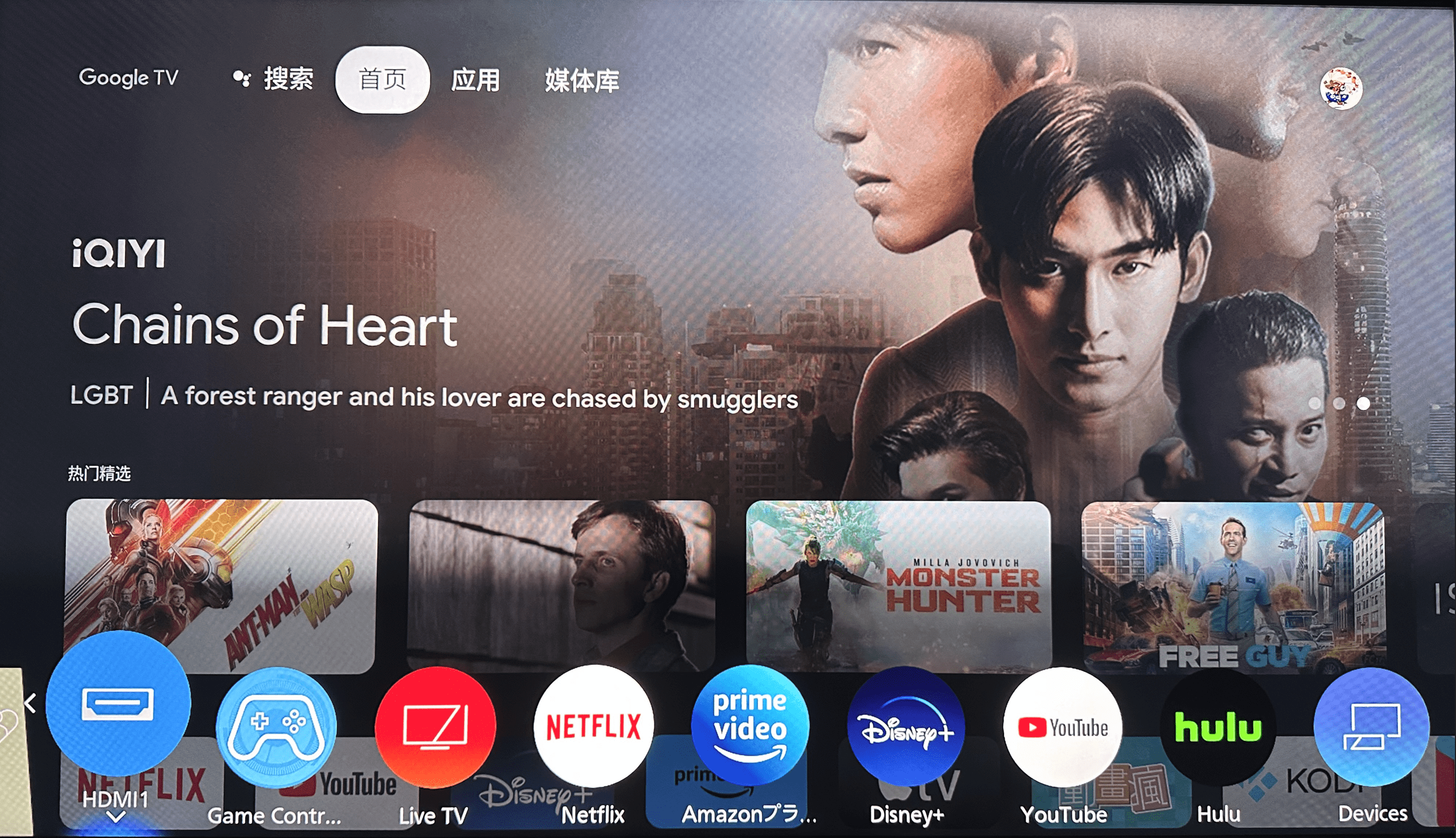 松下LX 800的系统其实有一些LG电视Web OS的风格,按遥控器的Menu键可以进入系统菜单去更改各种选项,如果按遥控器的Home键,则可以进入日常功能界面,在这个界面中,用户可以自己将需要的软件和功能钉选在上面,这样用起来也就相对方便一些。比如说快速切换到某个HDMI接口上、快速运行某个流媒体APP等,一些日常易用功能也在这部分,比如外接U盘观看图片和视频等。
