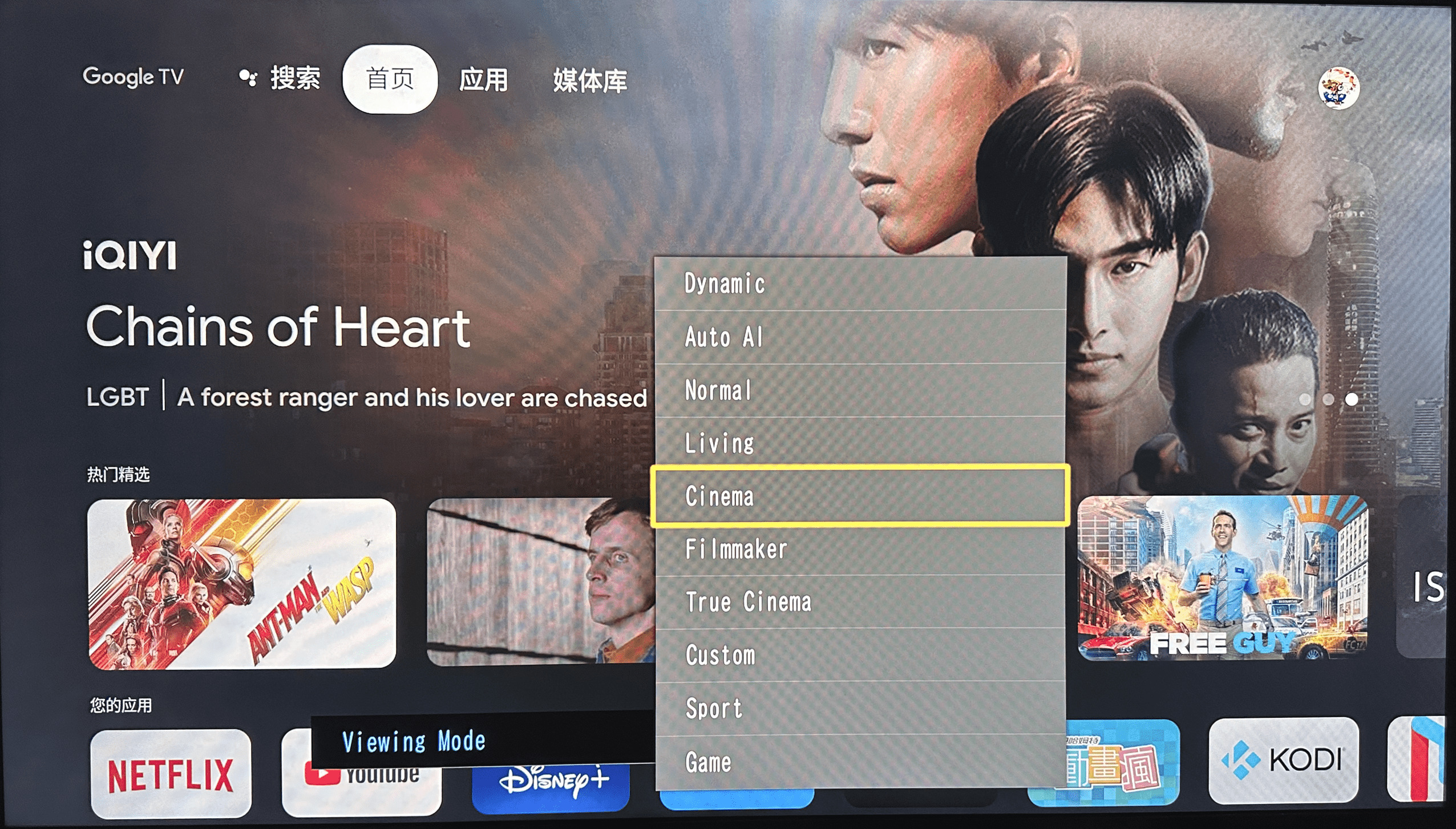 日常我们都推荐大家使用Ciname、Ture Cinam以及Filmmaker这三种电影模式来观看视频,Cinama相对设置可以自由一些,适合流媒体、普通电影也适合剧集、动画等等;要想获得24P电影院胶片感的体验,可以选择Ture Cinema;Filmmaker则是完全体现电影制作者的画面制作意图,日常蓝光UHD的话也可以用这个模式的。