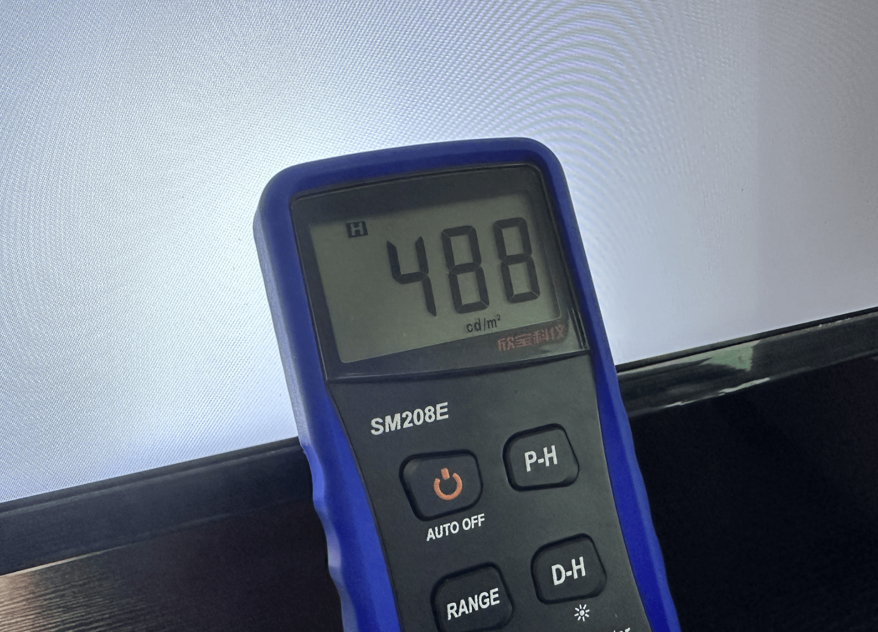色域部分,RGB色域可以做到98%,而DCI-P3色域就不算太高,我们测了几次基本都是85%上下,当然这也就是中低端电视的表现了。亮度部分,这款电视在10%窗口下,HDR峰值亮度最高为560nits左右,在全屏下可稳定在488nits的亮度,基本上SDR的全屏亮度也是这个水准。这个亮度只能在动态模式下测出,电影模式及其他模式的亮度会降低不少。不过这个亮度水准其实在中低端电视中已经算不错了,对比一下其他60Hz的电视,大多数都在300nits左右,小米一些120Hz的电视,也没有超过450nits的峰值亮度。