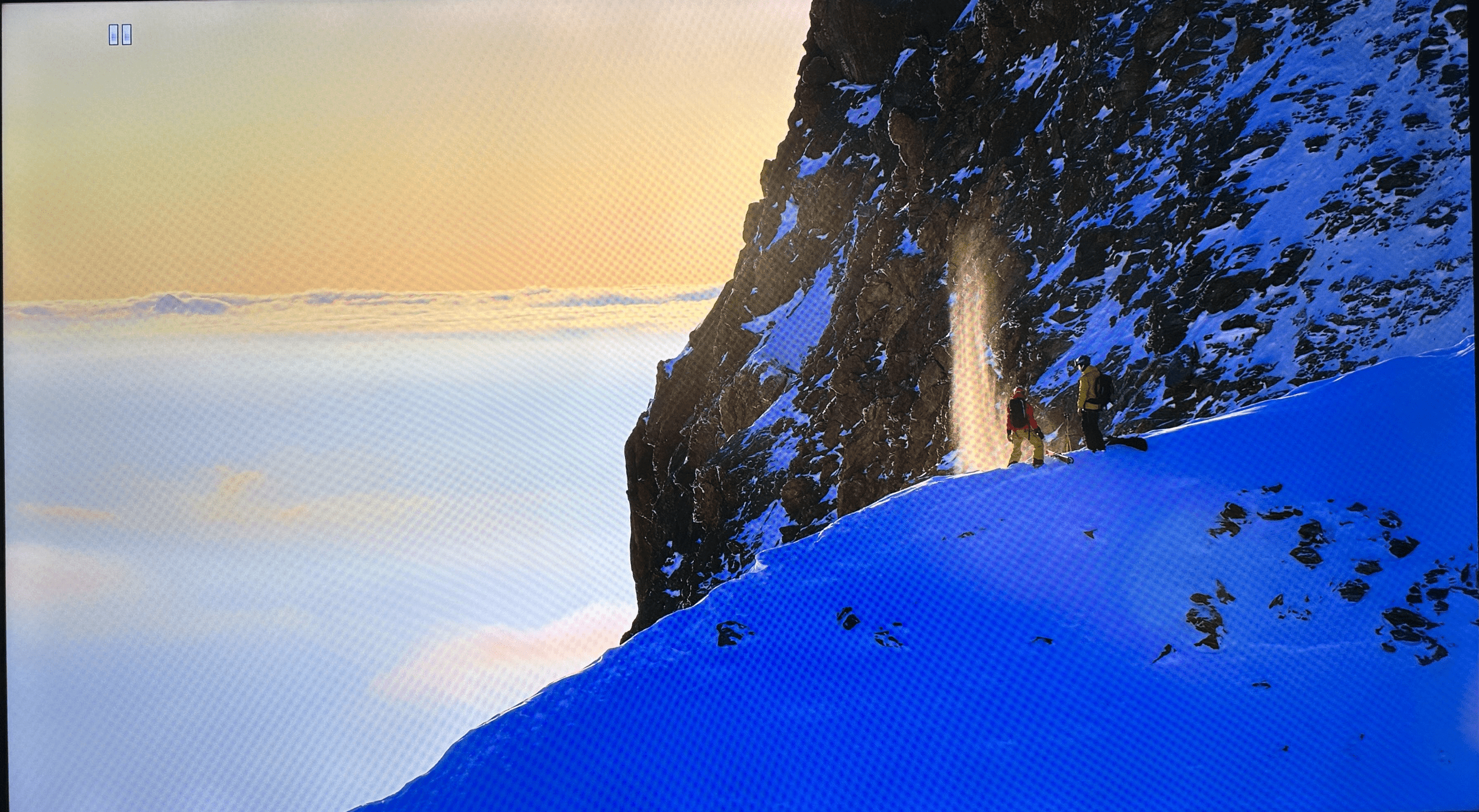 不过LX 800在控黑上和细节上的下限不低,但因为本身定位和规格的限制,所以它的上限也的确不高。我们拿TCL的Mini LED电视Q10G来做了一个简单对比,很明显因为拥有较多的背光分区,同时亮度也高出一倍左右,所以Q10G在暗部表现更好,特别是细节更为突出,同时屏幕上的噪点也更少,这部分是LX 800没法做到的。比如下图比较中,左手手套部分,LX 800已经完全无法展现细节了,Q10G还是可以轻松把细节体现出来。