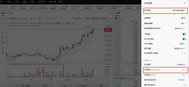 4、点击交易页面右上角设置图标—【交易设置】—选择【账户模式】【交易单位】等选项进行设置。