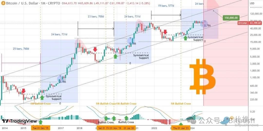 TradingShot强调,2023年6月的MACD看涨交叉“是在前一个周期高点之后19个月形成的,因此如果它遵循之前的峰值模式,那么比特币应该在2025年6月左右达到峰值。”