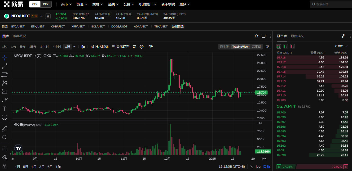 从市场表现来看,Neo币的价格近年来呈现出稳步上涨的趋势。截至2025年1月20日,Neo币的价格已经达到15.704美元,投资回报高达+5176.42%。尽管价格波动是数字货币市场的常态,但Neo币的稳健表现让投资者对其未来充满期待。