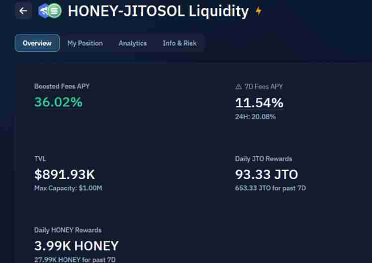 市场对这次创新合作的反应非常积极。根据官方数据,HONEY-JITOSOL流动性池表现出色: