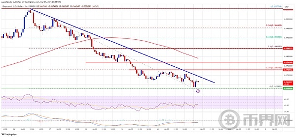 狗狗币的价格已经跌破了 0.1850 美元和 0.1750 美元的水平。目前,价格已经低于 0.1750 美元和 100 小时简单移动平均线。