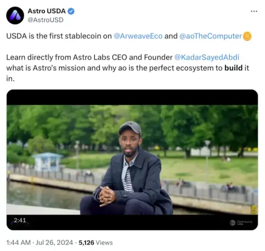 作为一个行业,我们已经探索了多种构建去中心化稳定币的方法。@KadarSayedAbdi 和他的团队正在将经过实战考验的超额抵押设计与 AO 独特框架所带来的新功能结合起来。USDA 是首个在 Arweave 生态系统和 AO 上推出的稳定币。直接向 Astro Labs 的 CEO 兼创始人 @KadarSayedAbdi 了解 Astro 的使命以及为何 AO 是实现这一使命的理想生态系统。