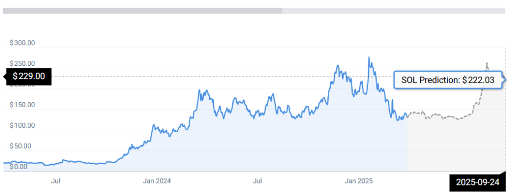 根据COINCODEX的预测,Sol可能会在2025年9月之前触及222美元。