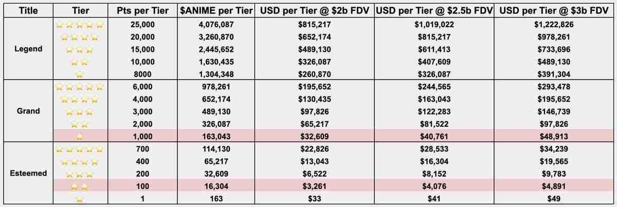 加密KOL @a_raving_ape的分析显示,在中性预期下(Anime的FDV维持在25亿美元),每枚Azuki NFT可以获得价值4.07万美元的空投,每枚Azuki Elementals NFT则可以获得价值4000美元的空投。