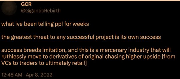 GCR认为,一个潜在的原因是人们模仿成功的项目。在这个快速发展的行业中,成功会催生模仿,从而导致大量衍生品被迅速创造出来,大家都想追逐更高的回报。这就像一个无止境的追逐游戏啊!