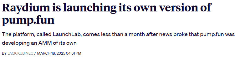 3月19日,Solana生态中的明星去中心化交易所(DEX)Raydium的代币RAY在短短24小时内飙升了超过22%,暂报2.088美元。是什么推动了这一涨势?原来是Raydium推出了一个全新的代币发射平台——LaunchLab,直接对标Pump.fun的Meme币发行模式。这一举动不仅标志着Raydium从对Pump.fun的被动依赖中觉醒,更将Solana生态内的流动性争夺战推向了新的高潮。这场博弈,究竟是Raydium的翻身仗,还是生态内耗的又一幕?让我们一探究竟。