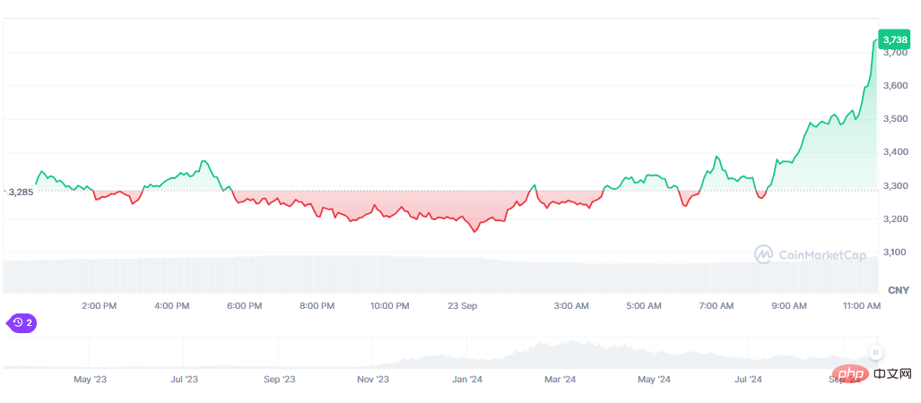 TAO 目前的交易价格为 415 美元,过去 7 天上涨了 43% 以上,过去 24 小时内上涨了 10%。尽管表现如此,该代币仍比 4 月份的历史高点低约 45%。