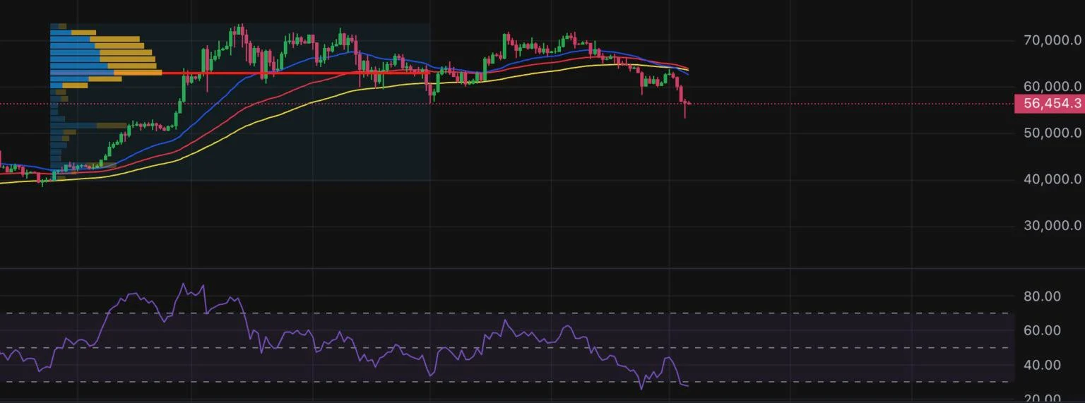 根据成交密集区判断,比特币跌破5.4万美元后的支撑位大约在5.2万美元附近,因此不排除当前的回弹还会在二次探底一次。