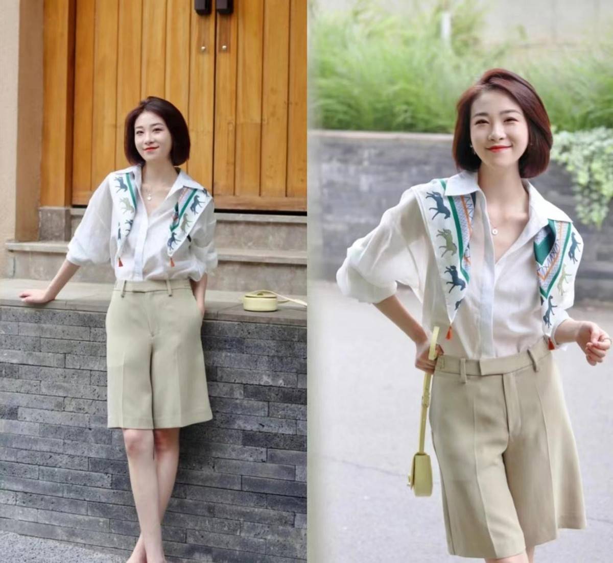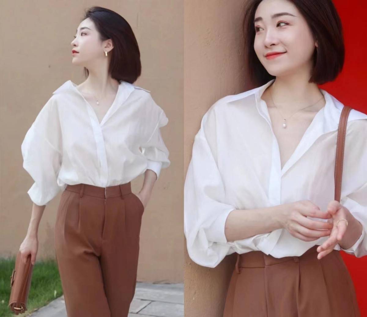衬衫是一款很好搭配的单品,体现在女性可以随意的选用自己喜欢的服装和它们配合在一起,以白色的衬衫为主,代表着后续的搭配方案无比的繁多。