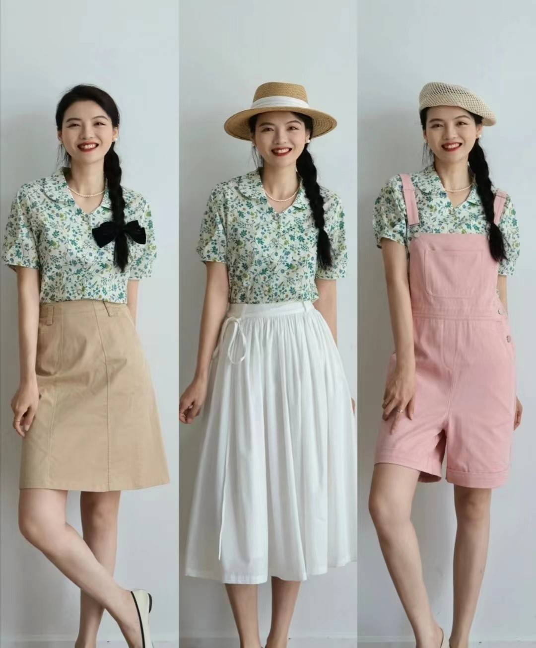 纯色衬衫可能无法满足女性的穿衣需求,如果想要打造出更加清新的感觉,还可以选用碎花衬衫,它的整个色彩的渲染更加丰富。