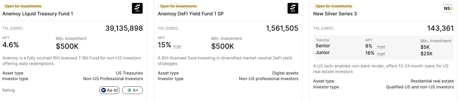 USDY(美元利率):由短期美国国债和存款担保,提供超额抵押和每日透明度报告,年化收益率为4.65%,投资门槛低至500美元,支持多个网络。