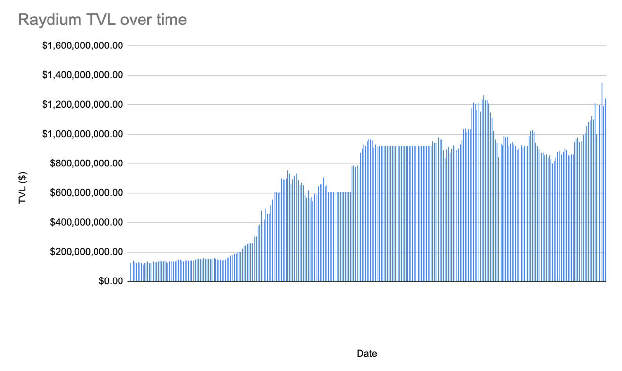Raydium累计交易量超3000亿美元,成功回购了大约3800万RAY代币,相当于价值5200万美元。Raydium的回购计划是所有DeFi项目中最亮眼的,帮助推动Raydium在Solana的所有DEX中名列前茅。