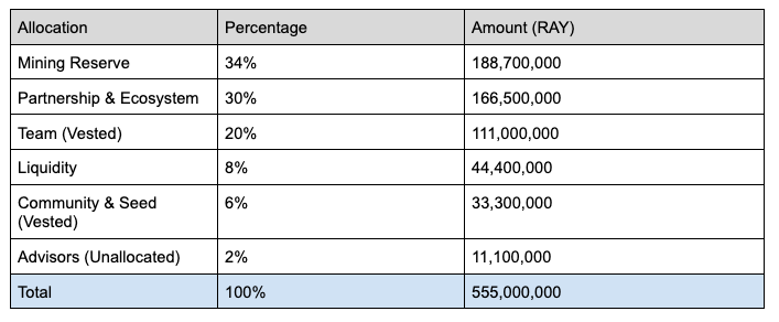 Raydium代币有多种用例:$RAY的所有者可以质押代币获得额外的$RAY。最重要的是,$RAY是一种挖矿奖励,用于吸引流动性提供者加入Raydium,从而提高流动性池深度。虽然Raydium代币不是治理代币,但治理方法正在开发中。