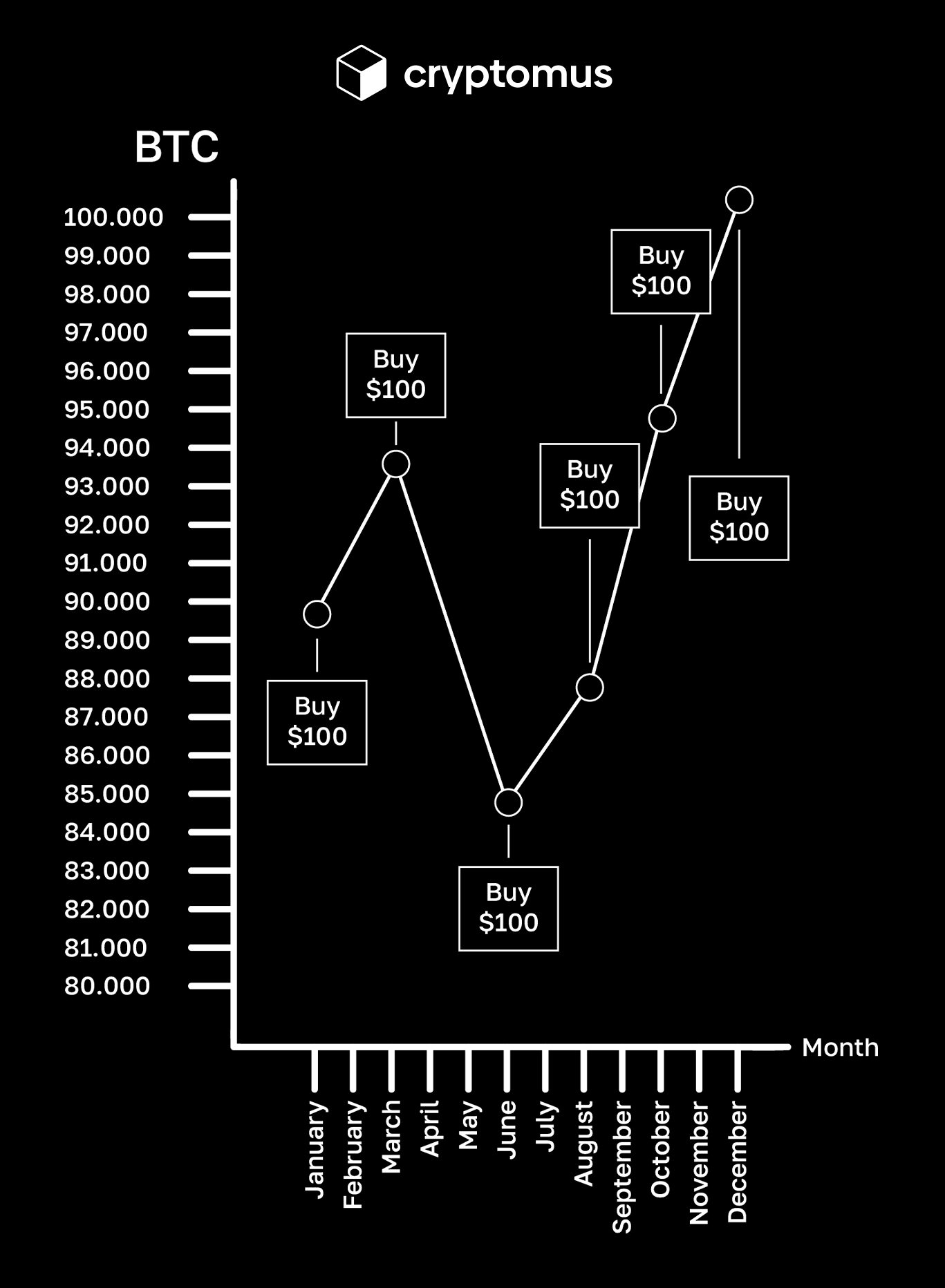 假设你从2022年12月到2025年3月,每月在比特币上投资100美元,总计投入2,800美元。到目前为止,你的投资将增长到6,280美元,是初始投资的两倍多。这说明,只要坚持长期投资,就能获得可观的回报。