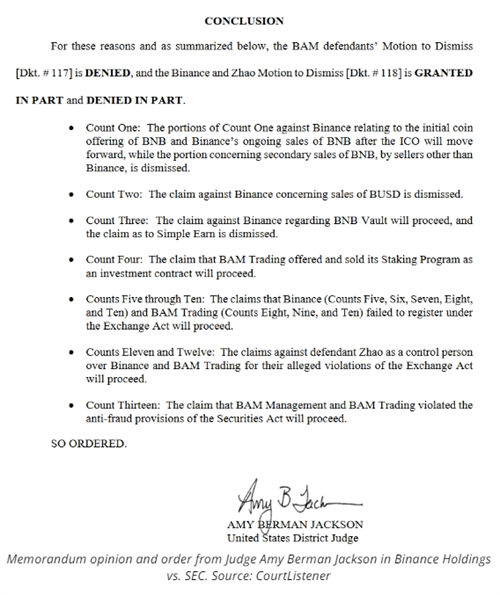 法院明确指出,前币安负责人赵长鹏(CZ)被指控为“控制人”,币安也被要求遵守相关法规进行注册。这些指控接下来还要继续审理。不过,SEC指控的BNB在二级市场销售,以及所有与Binance USD(BUSD)稳定币销售相关的指控,被法官驳回了。这对于币安来说,算是个好消息,法律压力减轻了不少。
