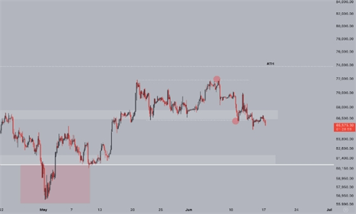 数据显示,比特币在某交易所的价格从65,910美元一路下跌至65,066美元,几乎触及6月14日创下的近一个月低点。周末出现的短暂回升未能延续,市场情绪依旧低迷。