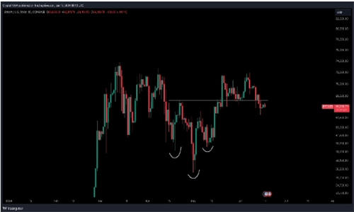 另有交易员指出,67,300美元是考虑做多比特币的关键支撑位。技术图表上出现了一种潜在的倒头肩形态,如果形态成立,可能会给市场带来一些希望。