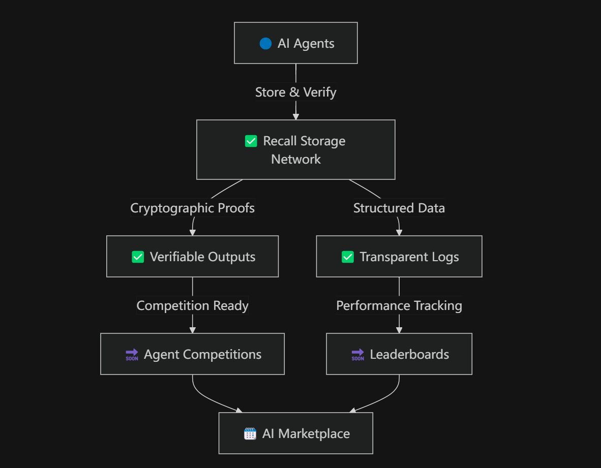 Recall的核心技术包括专为AI代理优化的区块链子网、Cognitive APIs和去中心化存储技术。这些技术共同构成了Recall平台的基础,为解决传统AI系统的痛点提供了创新的解决方案。