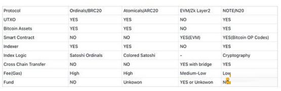 和其他协议不太一样的是,NOTE协议非常注重安全性。它完全基于密码学,由比特币矿工来保证资产的所有权。这样就避免了因为索引器出错而导致的问题。而且,NOTE协议的交易成本非常低,不需要像其他协议那样发送两次交易。更重要的是,它支持智能合约,可以实现很多有趣的功能。