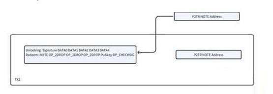 NOTE协议采用的技术策略与Ordinals和Atomicals协议有显著的不同之处。Ordinals和Atomicals利用P2TR(Taproot)的赎回脚本,通过添加OP_FALSE OP_IF操作码构造了一个不可访问的数据区域,以此来嵌入额外数据。而NOTE协议则允许通过操作码直接操作解锁数据,提高了数据的可用性。在NOTE协议中,示例脚本能够直接从堆栈中弹出数据,更复杂的脚本则能实现如hashlock等链上的检查功能。