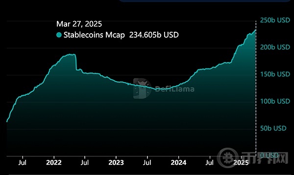 首先,关于稳定币与BTC价格变化的分离原因,这次周期的新增资金并未直接大范围流入BTC现货市场。数据显示,2025年3月衍生品未平仓合约仍维持在540亿美元高位,而交易所的现货稳定币净流入相对疲软。这意味着大量稳定币被用于杠杆交易(如期货、永续合约),而非实际持币需求,甚至更多的成为了一种对冲手段。