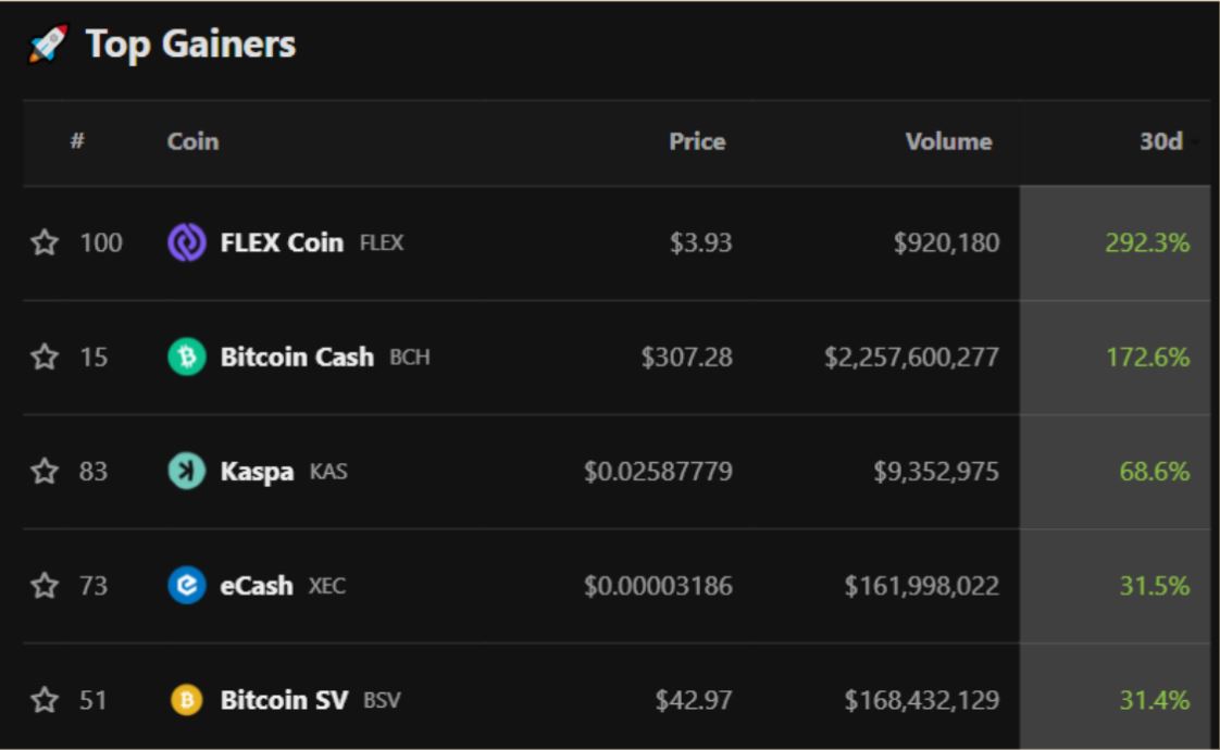在六月份涨幅最大的加密货币中,比特币的几个“兄弟”表现尤为突出,紧随其后的是 Kaspa 和 FLEX Coin (FLEX)。FLEX 的上涨得益于与一家交易所的整合,该交易所背后有曾经风光无限,但最终破产的某基金联合创始人支持。