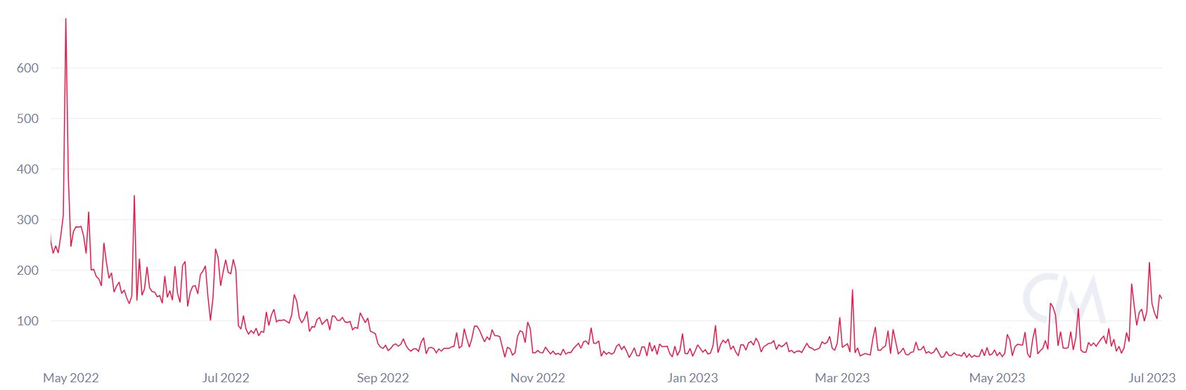 值得注意的是,随着 FLEX 价格飙升至 2022 年峰值水平,交易量仍然低迷,仅占其峰值时每日交易量的一小部分,这引发了警惕。