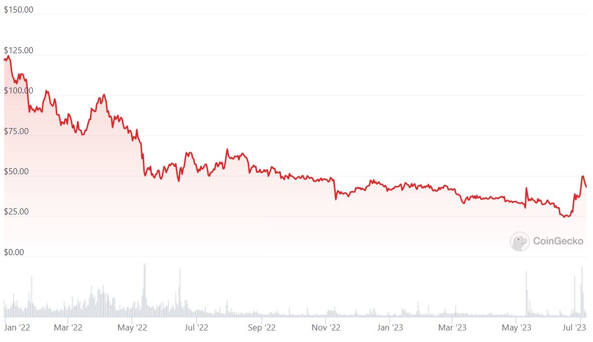 自 2022 年以来,BSV 一直处于持续下跌趋势,因为加密货币牛市及其交易量枯竭后,人们对区块链的兴趣逐渐消退。