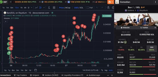 这个地址只花了 10.2 个 SOL(约 1,795 美元)买了 3627 万枚 BAN,然后以 13.76 万美元的价格卖掉了 1813 万枚,还留下了价值 90 万美元的 1813 万枚 BAN。算下来,总利润超过 100 万美元。