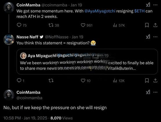 最近,以太坊联合创始人 Vitalik Buterin 宣布要调整以太坊基金会的领导结构,这事儿引发了一些讨论。有个交易员甚至公开喊话,说只要现任董事宫口あや下台,以太坊的价格就能在两周内创新高。