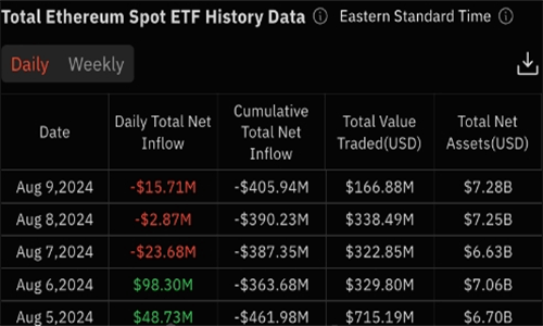 然而,尽管整体呈现净流入态势,但并非所有ETF都表现强劲。21Shares核心以太坊ETF和景顺银河以太坊ETF在本周的净流量为零,显示出市场对这些产品的兴趣相对有限。此外,Grayscale的以太坊信托基金在本周遭遇了1.8亿美元的资金流出,若不计入这一因素,九只ETF的总流入量将更为可观。尽管如此,Grayscale的现货以太ETF资产持续流出已累计达23亿美元,导致所有九只基金的总流出量仍高达4.064亿美元。