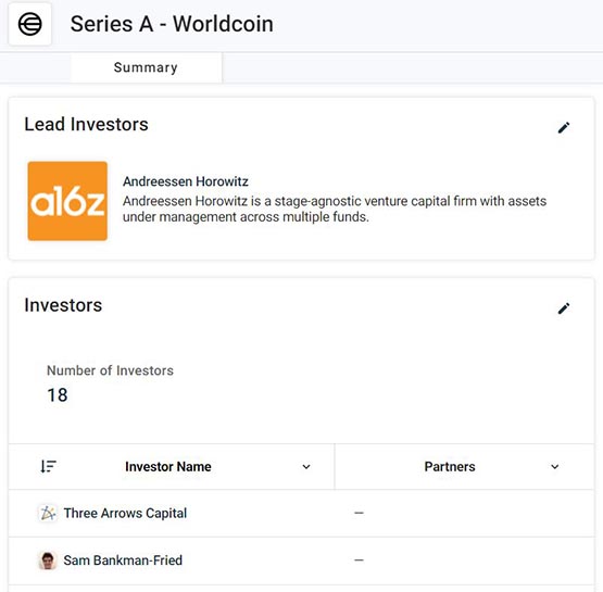 根据创业公司资料库 Crunchbase 的信息,SBF 在 2021 年参与了 Worldcoin 的 A 轮融资,该轮融资总额高达 2500 万美元。其他投资者还包括同样已经破产的加密货币对冲基金三箭资本 (3AC) 以及数字货币集团 (DCG)。