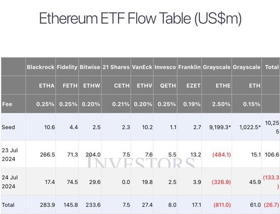 以太坊现货ETF上市第二天,市场却遭遇了1.33亿美元的资金净流出。这背后的“罪魁祸首”,似乎直指灰度(Grayscale)的以太坊信托基金(ETHE)。与此同时,加密货币市场也受到波及,比特币价格一度跌破64,000美元,以太坊的24小时跌幅更是超过了5%。