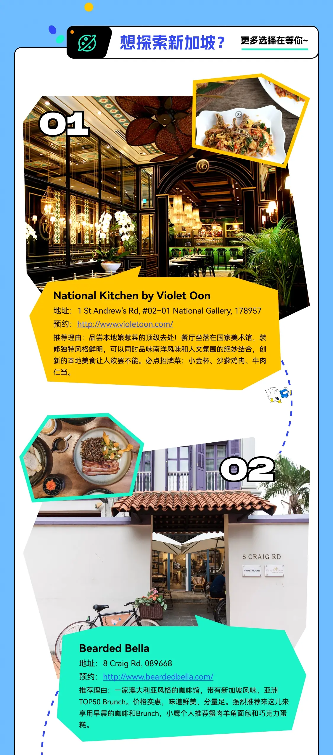 关于饮食,新加坡是一个美食天堂。你可以尝试本地美食,像鸡饭和辣蟹,或者去唐人街体验正宗的亚洲风味。如果你想尝试一些国际美食,Clarke Quay和Marina Bay有很多不错的餐厅。记得带上一些小零食,以防会议期间饿了没东西吃。