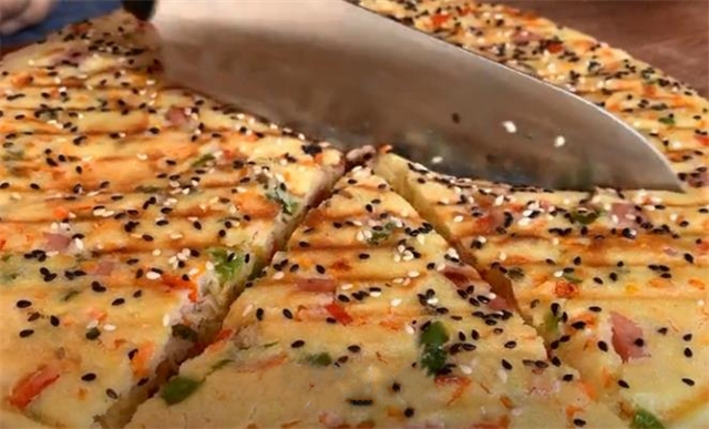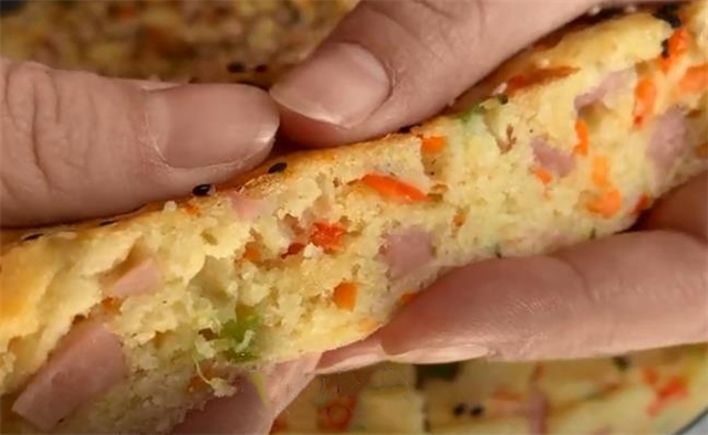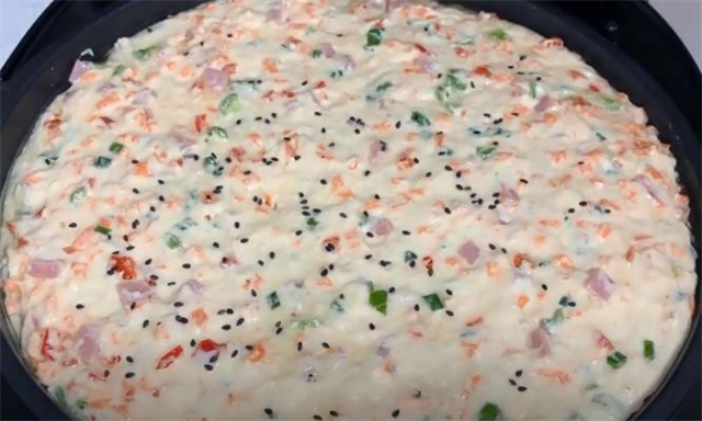 大米、温水、酵母粉、白糖、盐、普通面粉、玉米面、胡萝卜、青红椒、小葱、素火腿肠、食用油、黑芝麻