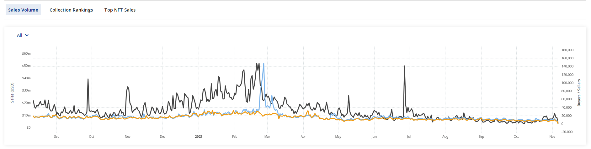 与此同时,买家和卖家的数量也分别增加了 13% 和 20%, 看来大家对以太坊 NFT 市场又重新燃起了兴趣。