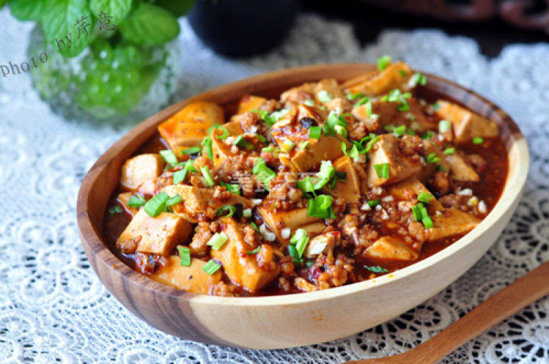 北豆腐400克,牛肉馅40克,青蒜叶5克,蒜末15克,豆瓣酱20克,豆豉15克,盐1/2茶匙,料酒1汤匙,辣椒粉1茶匙,花椒粉适量,水淀粉4汤匙,水120毫升。