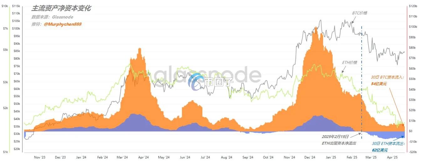 BTC、ETH 资金流入变化