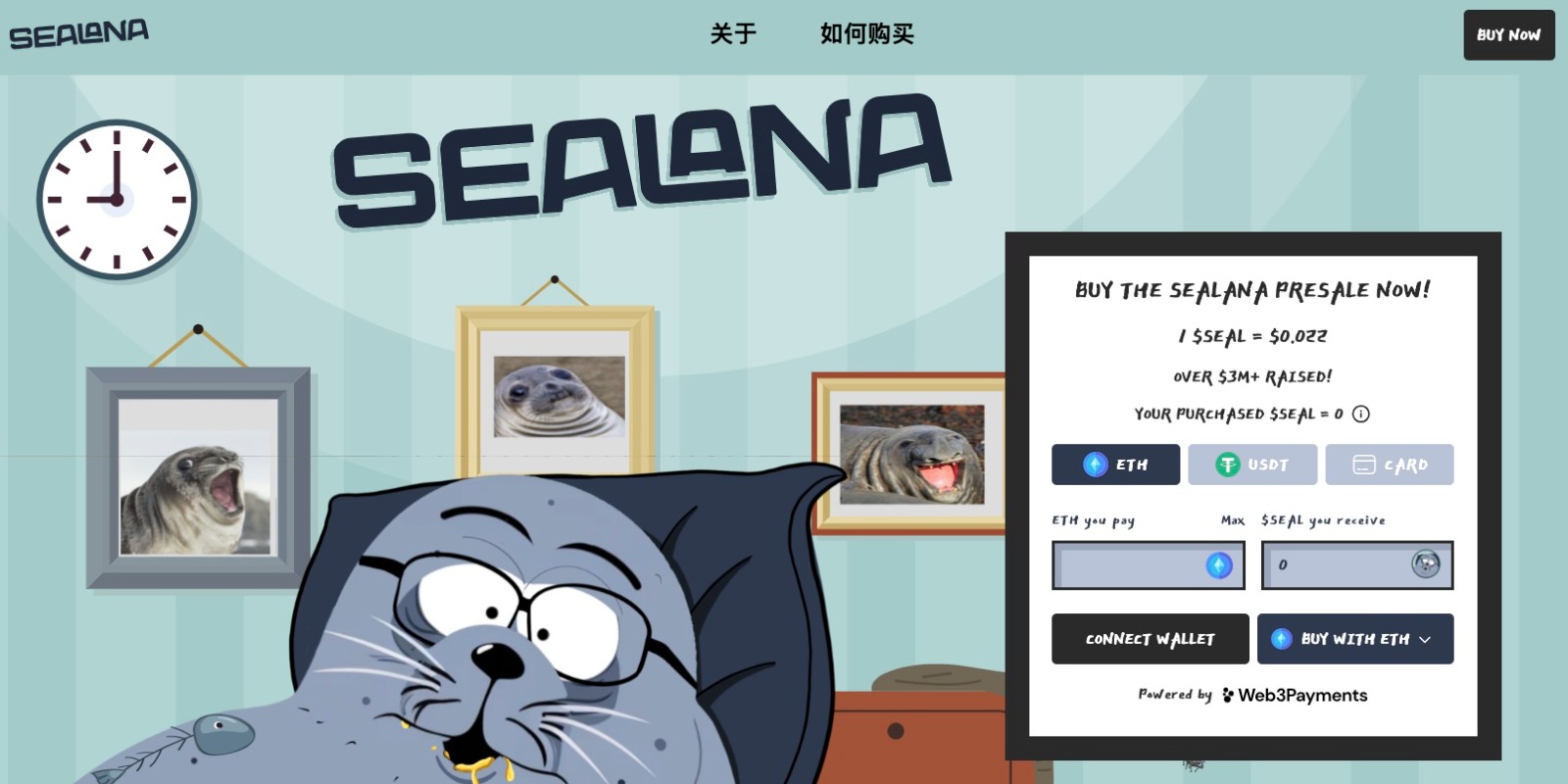 Sealana以一只胖乎乎的海豹为形象,这只海豹曾深入Solana海。Sealana项目描述其为一个在计算机前被大量折磨,并全神贯注于degen市场的海豹,以至于他放弃了年轻时的华丽身材。