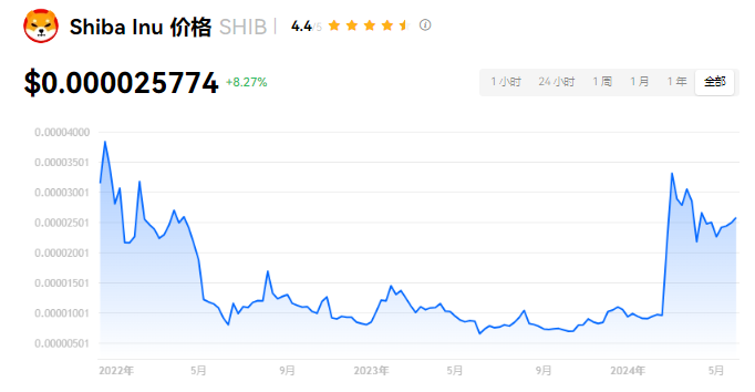 Shiba Inu的当前价格为$0.000025774。在过去24小时内,Shiba Inu的价格上涨了+8.28%。目前,Shiba Inu在市值排名中位居第11位,实时市值为$152.01亿,流通供应量为589,262,909,794,915 SHIB,最大供应量为999,982,356,876,276 SHIB。我们会实时更新Shiba Inu/USD的价格数据。