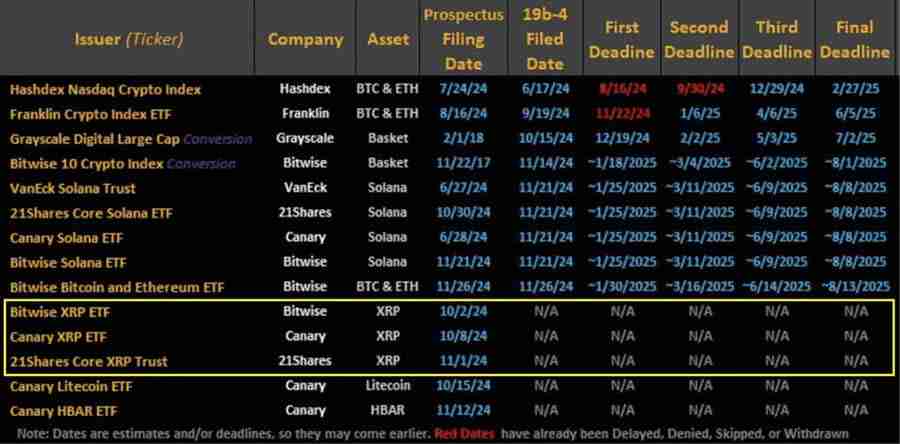 Ripple的执行长Brad Garlinghouse在六月接受采访时,对XRP ETF的可行性表达了强烈信心,并预测会在2025年实现。目前已有三家ETF发行商,包括Bitwide、21Shares和Canary Capital向美国证券交易委员会(SEC)提交了XRP ETF的S-1文件申请,不过尚未出现在SEC的联邦公报上(出现在公报上才会开始正式进入审理流程)。