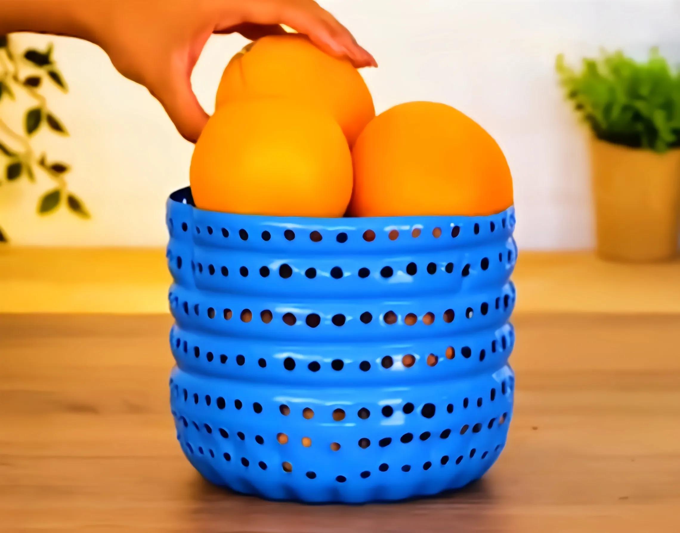 4、空油桶不要扔,把它一分为二,在瓶身开上很多小孔,你就拥有一个既好看又时尚的水果篮了。是不是很棒?