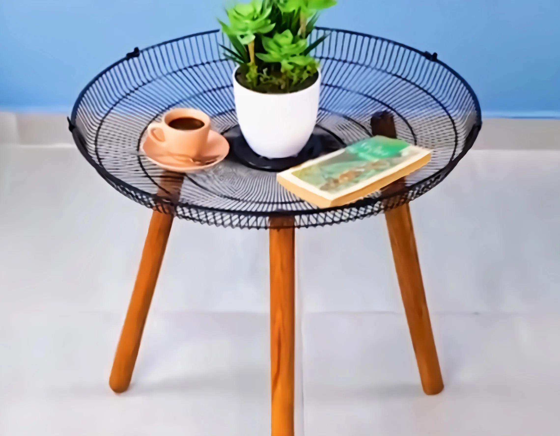 6、夏天到了,如果风扇坏了,别急着扔掉。把扇叶取下来,用螺丝固定几个桌角,刷上你喜欢的颜色,用它来摆放物品,放在客厅里,朋友们都夸我聪明呢!