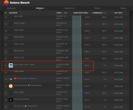 如果想控制 Solana 超过 50% 的算力,黑客需要同时拿下排名前 43 的节点。虽然难度很大,但并非完全不可能。