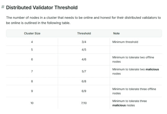 例如,4 个人共同管理一个节点,你可以要求它是 3/4 的配置,这样一旦某个节点掉线,其他节点可以立刻顶上。如果你设置为 10,那么你可以设置 7/10,最多容忍 3 个节点掉线。
