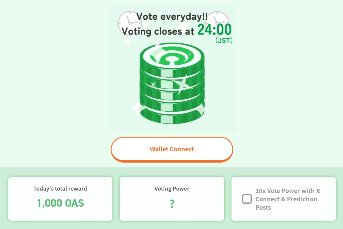 一种游戏,您可以通过猜测价格会走向来赚取 OAS 代币。如果你在社交媒体上分享结果,那么声音的强度就会增加 10 倍。因此,如果你猜,利润将增加 10 倍,如果你做出不成功的选择,损失将增加 10 倍。